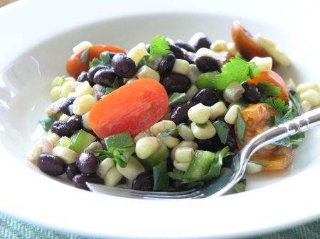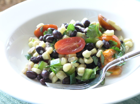 It makes me think of something I heard Thomas Keller say when I saw him speak at a TimesTalk event this week in San Francisco. He said, “Fine cuisine in New York City is all about technique. In California, it’s all about the amazing product we have here.” Even though the ingredients in this salad are pretty humble, it benefits from the fact that I am throwing in these juicy, fresh, heirloom grape tomatoes and super fresh cilantro (a personal favorite of mine). There is no technique to this salad. It’s all about letting the ingredients speak for themselves and I’m okay with that.