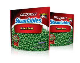 The rest zoom on their way through wash after wash, a quick steam bath at about 210˚F for 2-3 minutes, then more washing and finally flash freezing. At this plant the peas are put into large, 3ft. by 3ft. plastic lined cardboard boxes and stacked in a warehouse for storage. They aren’t put into the consumer size bags you see below at this plant. They wait until they are ready for distribution at retail grocery stores before packing them in the consumer sized bags.