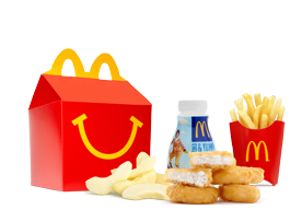 In early 2012, McDonald’s modified the happy meal and reduced the french fry serving size to 1 oz (100 calories). They added a bag of apple slices to every meal too. In San Francisco, to comply with a “no free toys” law, they started charging 10 cents for the toy and donating the proceeds to build a new Ronald McDonald house at UCSF. Not a bad solution.
